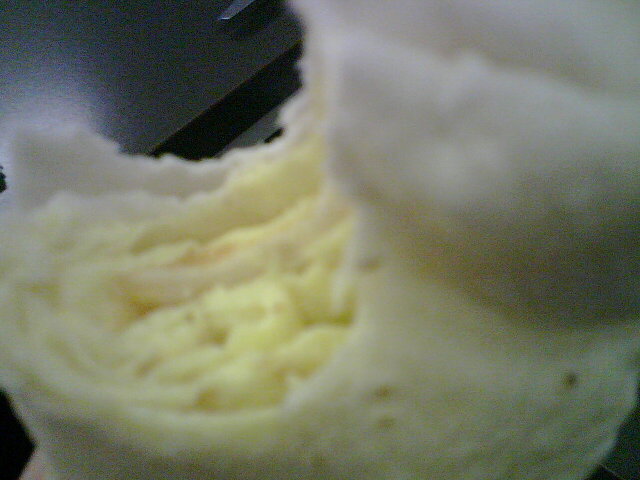 Haha. My cameraphone is not functioning well today, but yes, it is an egg burrito. Rock on Wystful!